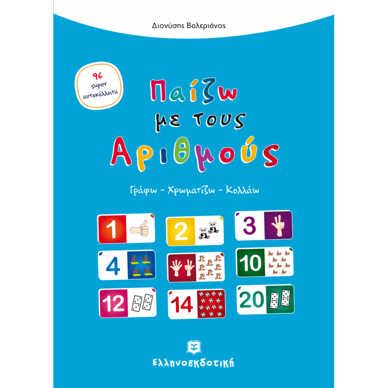 Σε αυτό το βιβλίο δραστηριοτήτων οι μικροί μας φίλοι έρχονται σε επαφή με τους αριθμούς. Αναγνωρίζουν τους αριθμούς και μαθαίνουν να τους γράφουν, αναπτύσσοντας τη λεπτή κινητική δεξιότητα της γραφής. Παράλληλα, χρωματίζουν και κολλούν 96 πολύχρωμα αυτοκόλλητα, παίζοντας και διασκεδάζοντας.