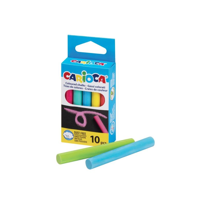 Σετ με 10 χρωματιστές κιμωλίες για μαύρη επιφάνεια. Είναι dust free, γράφουν και σβήνουν εύκολα.