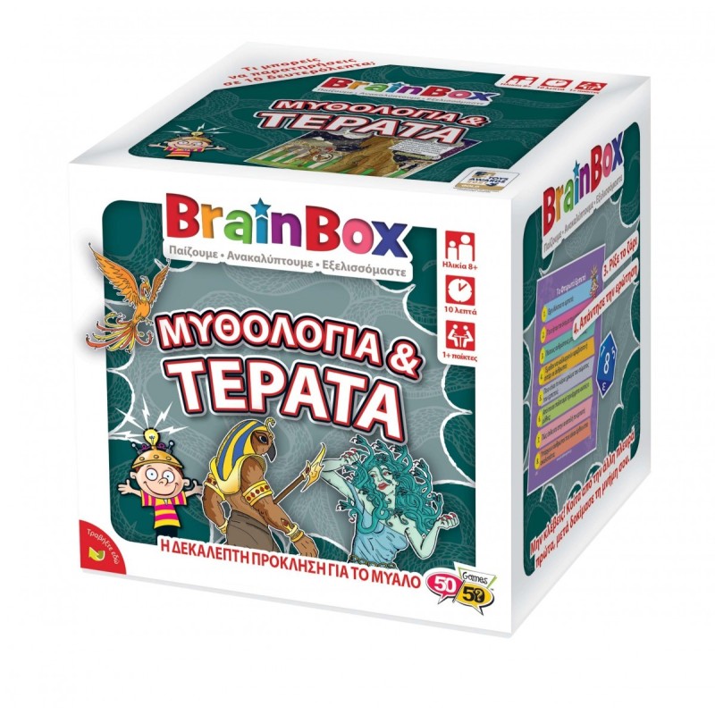 Εξερεύνησε μύθους και θρύλους από όλο τον κόσμο με αυτό το συναρπαστικό BrainBox. Στο BrainBox Μυθολογία & Τέρατα, περιλαμβάνονται κάποιοι από τους πιο πολυαγαπημένους μύθους απ' όλο τον κόσμο, με περιγραφές των σκηνών δράσης. Συνάντησε ήρωες, όπως ο Ηρακλής και ο Θησέας και τρομακτικά μυθικά τέρατα. Η περιπέτεια ξεκινάει τώρα!