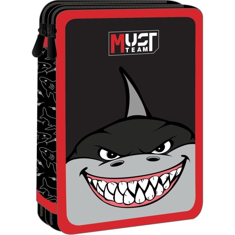 Σχολική Κασετίνα Διπλή Γεμάτη Must Shark περιέχει στυλό, μολύβι, γόμα, ξύστρα, χάρακες, ξυλομπογιές και μαρκαδόρους