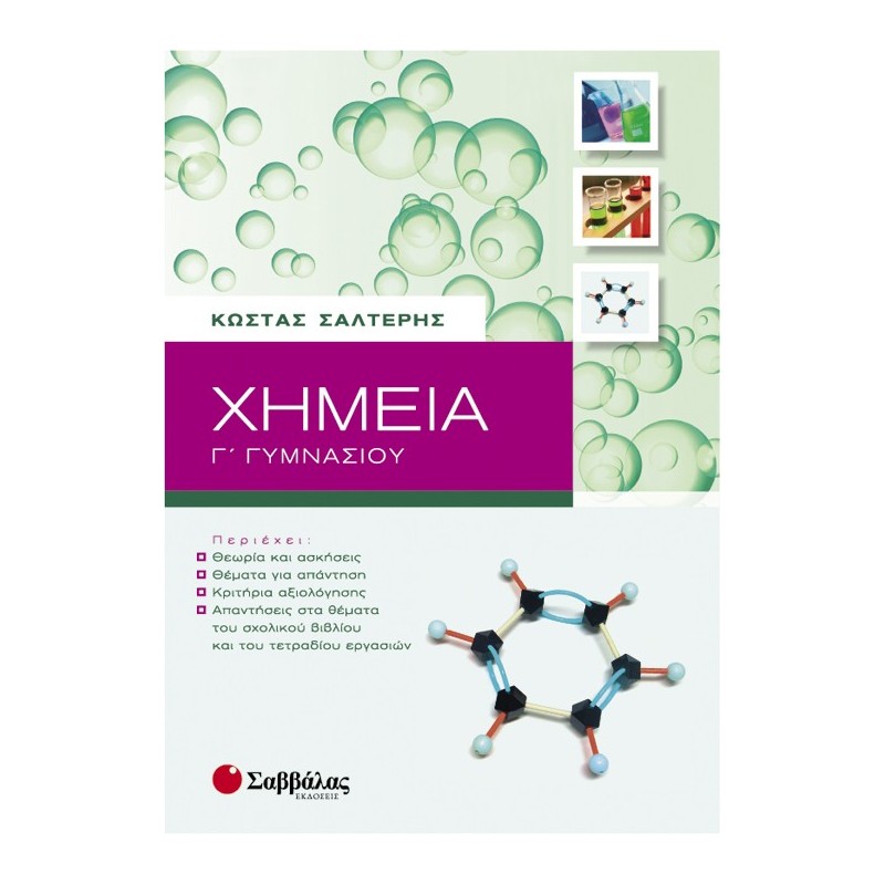Το βιβλίο αυτό αποτελεί ένα πλήρες βοήθημα για τους μαθητές της Γ’ Γυμνασίου. Στόχος του είναι να συμβάλει στην κατανόηση της Χημείας ώστε οι μαθητές να ανταποκριθούν στις απαιτήσεις της τάξης τους, αλλά και να αποκτήσουν γνώσεις που θα τους φανούν χρήσιμες για το Λύκειο.