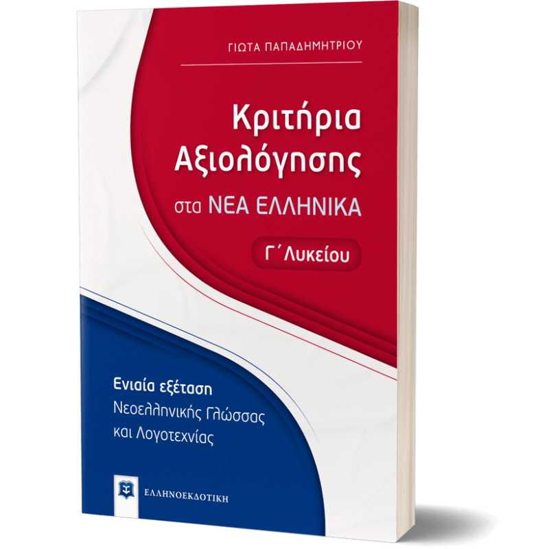Το εκπαιδευτικό βιβλίο Κριτήρια Αξιολόγησης στα Νέα Ελληνικά Γ΄ Λυκείου για την ενιαία εξέταση Νεοελληνικής Γλώσσας και Λογοτεχνίας γράφτηκε σύμφωνα με τον νέο τρόπο αξιολόγησης του μαθήματος.