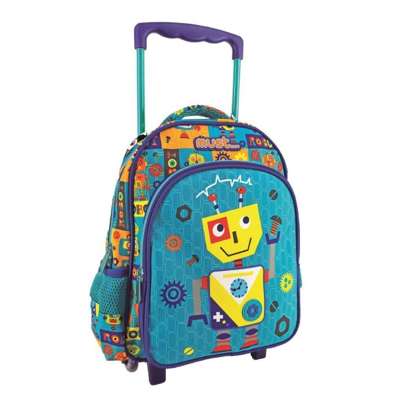 Η Σχολική Τσάντα Τρόλεϊ Νηπίου Must Robot με 2 θήκες ξεχωρίζει για το υπέροχο σχέδιο ρομπότ με γρανάζι από καουτσούκ και LED φώτα που λειτουργούν μετά από ένα απαλό χτύπημα! Ιδανική σχολική τσάντα προσχολικής ηλικίας που συνδυάζει σακίδιο πλάτης και τρόλεϊ μαζί για να μεταφέρει με ασφάλεια, άνεση και ευκολία όλα τα απαραίτητα σχολικά είδη στον παιδικό σταθμό και το νηπιαγωγείο.