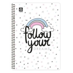 Κλασικό τετράδιο σπιράλ 4 θεμάτων B5 (17x25). Με εξώφυλλο πλαστικοποιημένο 350 γρ. και με σκληρό οπισθόφυλλο για να μπορείς να γράφεις σταθερά. Τα φύλλα είναι από εξαιρετικής ποιότητας χαρτί 70γρ. και η γραμμογράφηση είναι ριγέ με σωστές αποστάσεις. Είναι 4 θεμάτων, με διαχωριστικό για μεγαλύτερη ευκολία.