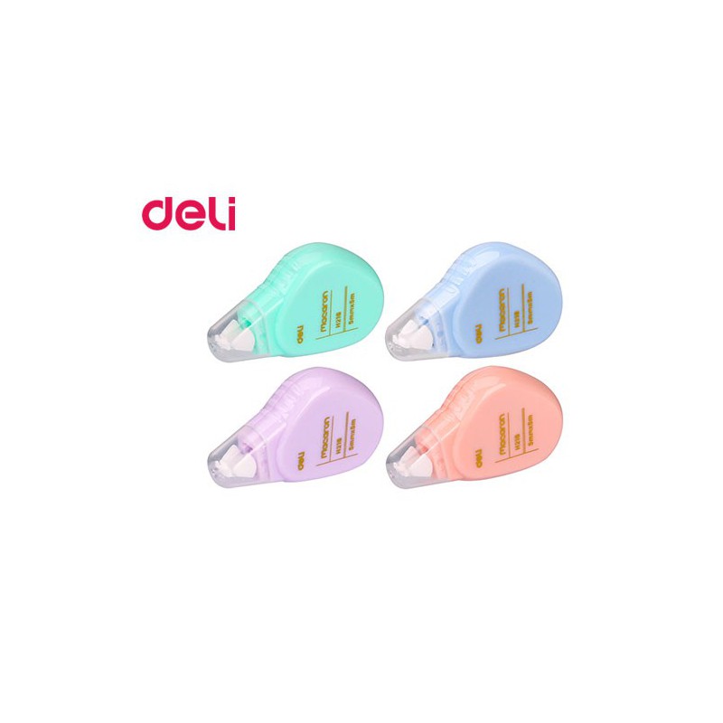 Με τις νέες pocket size Διορθωτικές Ταινίες Macaron της Deli διόρθωσε κάθε λάθος σου γρήγορα και πρακτικά, χωρίς ίχνη στις φωτοτυπίες. Έχει πάχος 5mm για διόρθωση μονής γραμμής και μήκος 5m. H υψηλή καλυπτικότητα της σου δίνει τη δυνατότητα να γράψεις αμέσως.