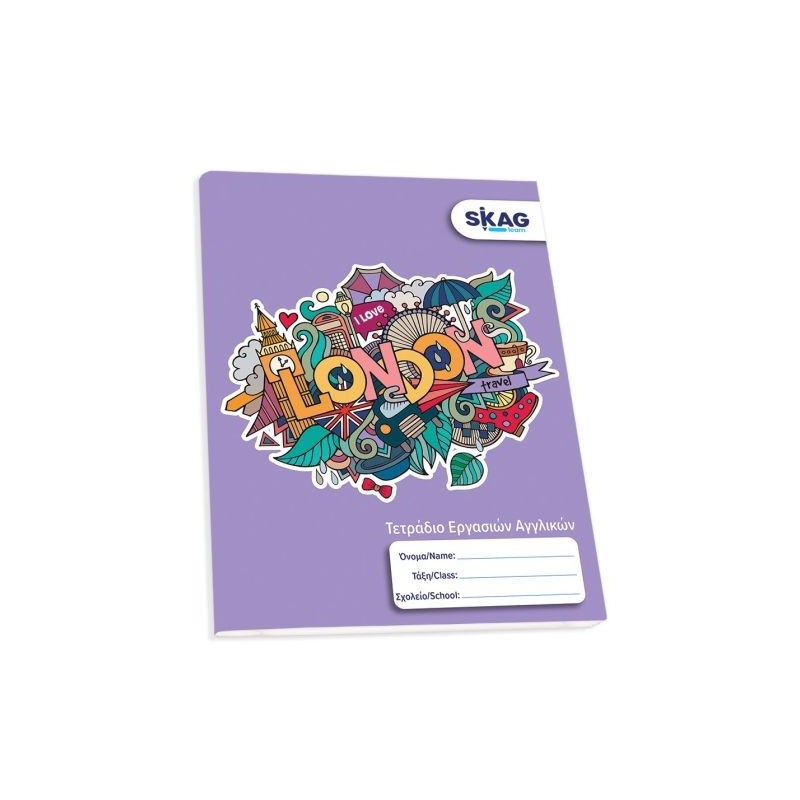 Τετράδια SKAG Εργασίων Αγγλικών. Τυπωμένο εσωτερικά, αφιερώνοντας μία σελίδα για κάθε ημέρα του σχολικού έτους, όπου ο μαθητής μπορεί να σημειώσει τα μαθήματά και τις εργασίες που του έχουν ανατεθεί.